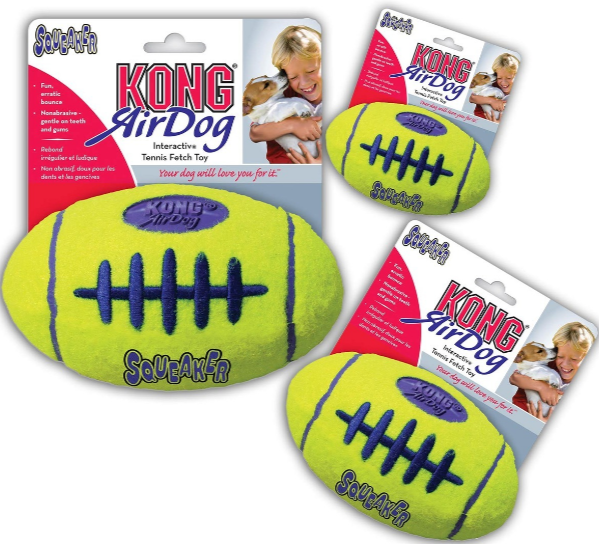 Το AIR KONG FOOTBALL συνδυάζει δύο κλασικά παιχνίδια σκύλων – την μπάλα του τένις και το squeaker – για να δημιουργήσει μια άμεσα αναγνωρίσιμη μορφή την μπάλας του αμερικανικού ποδοσφαίρου, είναι το τέλειο παιχνίδι επιστροφής. Ανθεκτικό, υψηλής ποιότητας το οποίο δεν κάνει ζημιά στα δόντια του σκύλου σας. Είναι κατασκευασμένο με μιαν μη διαβρωτική τσόχα, αντίθετα από το υλικό που χρησιμοποιούν σε κανονικές μπάλες του τένις.