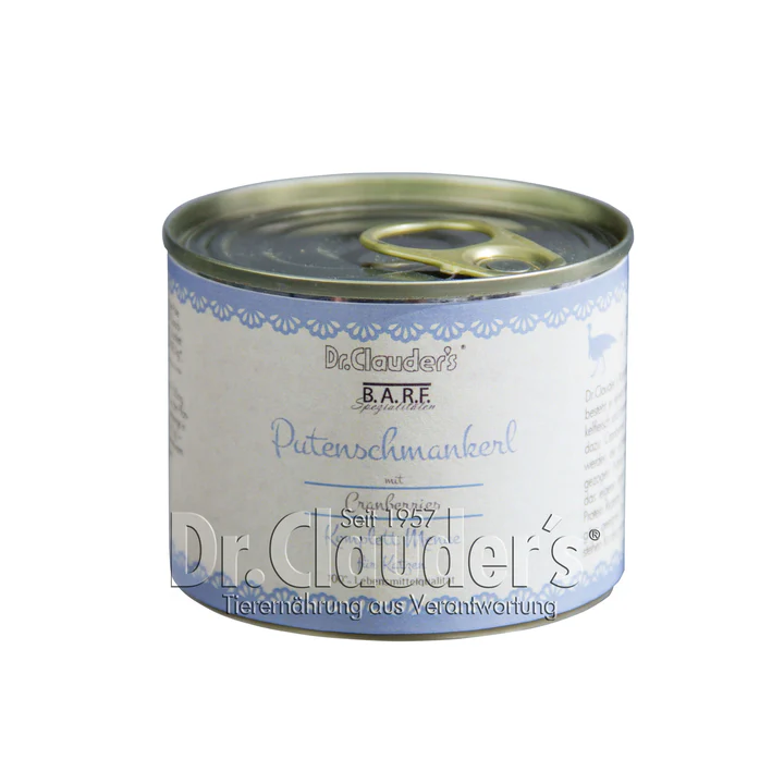 Dr. Clauder’s Complete Meal “Turkey Delicacies” consists of an optimal ratio of muscle meat and offal, 100% turkey, supplemented with cranberries. The added oils provide important vitamins and fatty acids. Only hunting oneself can be closer to nature. Thanks to the single-protein recipe, this product is also suitable for allergic cats. Dr.Clauder’s BARF specialties represent pure BARF enjoyment for your cat.