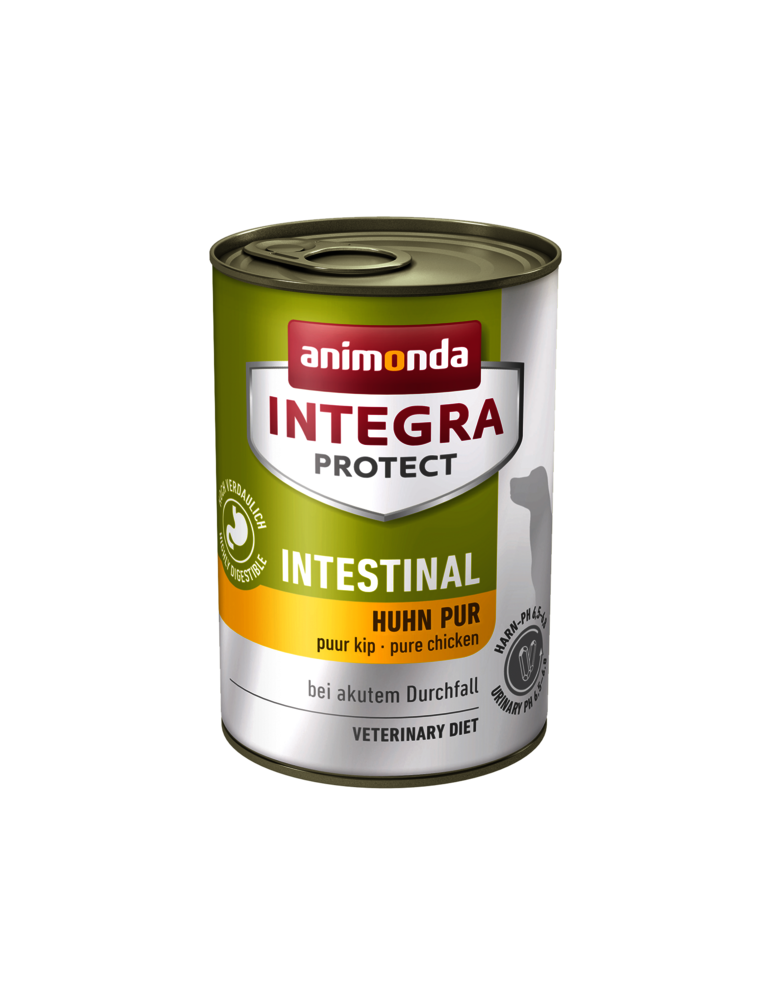 INTEGRA PROTECT Intestinal was specially developed for dogs with acute diarrhea. Easily digestible ingredients protect the gastrointestinal tract. The increased electrolyte content compensates for losses caused by vomiting and diarrhoea.