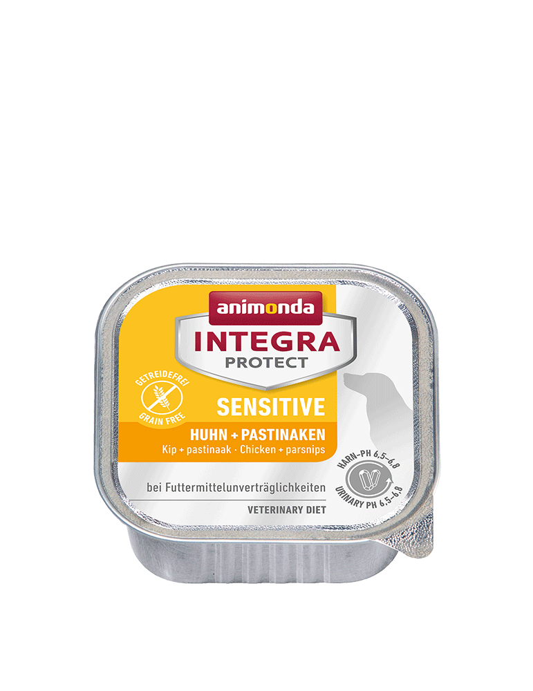 INTEGRA PROTECT Sensitive has been specially developed for dogs with food intolerances, the chief symptoms of which are anal itching and diarrhoea. Strictly limiting the use of animal and plant protein sources can help. INTEGRA PROTECT Sensitive offers various varieties of the diet, which contains a maximum of two sources of protein.