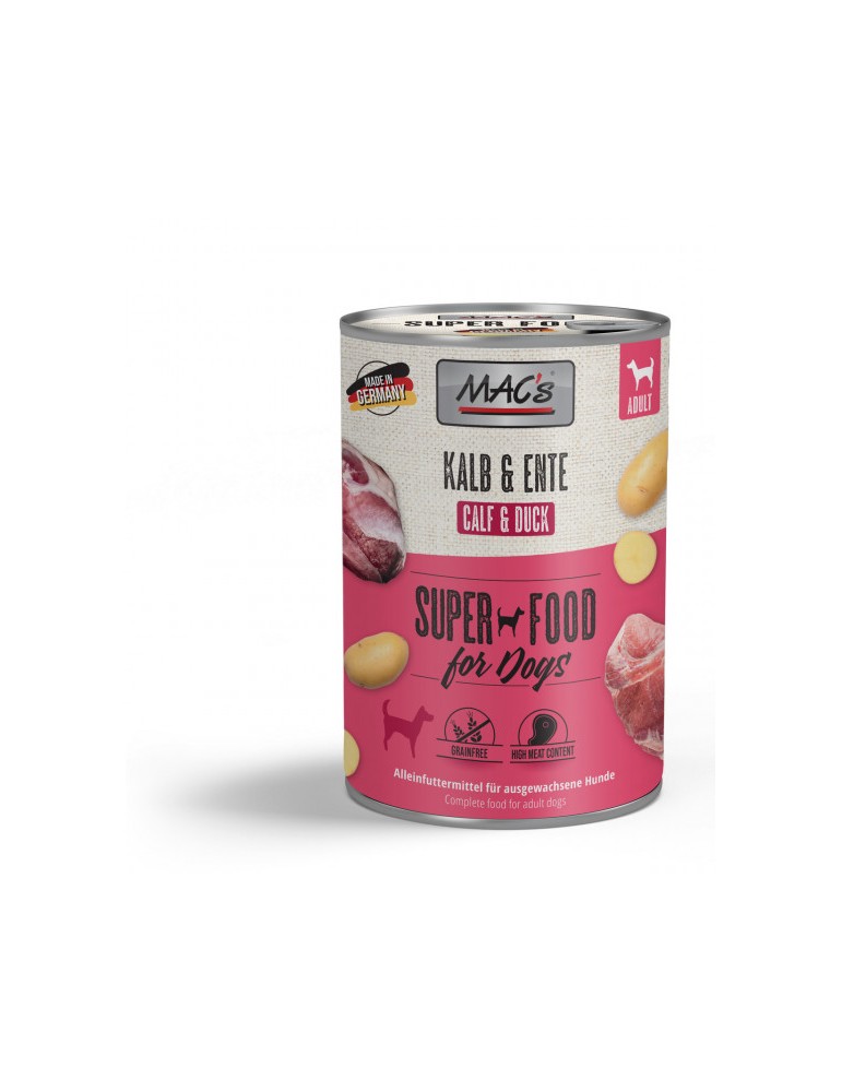 MAC’s Dog Veal & Duck is grain-free and a very tasty recipe made from a lot of fresh meat, which is rounded off by potatoes and seaweed. Through gentle preparation and the addition of vitamins and minerals, a natural nutrition for your dog is achieved.