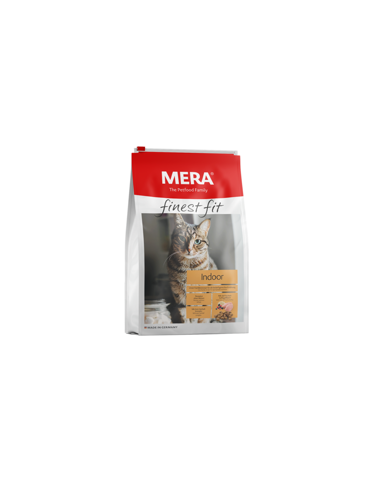 Mera finest fit Indoor is tailored towards the specific needs of domestic cats. Cats living indoors have a smaller radius of movement. With an easily digestible recipe from tender poultry and rice, refined with forest fruits, finest fit supplies all domestic cats with the appropriate energy content. Especially domestic cats often groom their coat very intensively, which is why the anti hairball complex, helps to bind and excrete swallowed hair. As special mineral combination can prevent the formation of urinary stones.