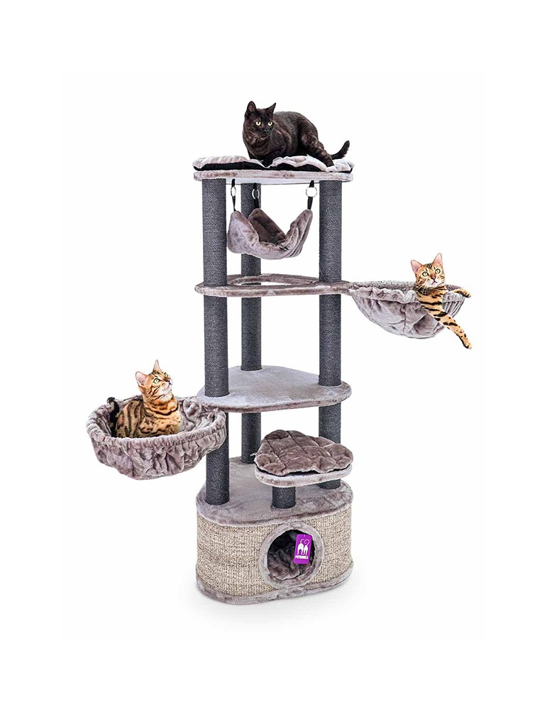 We believe that cats deserve the very best. With that in mind, we started working on the design of Catharina 160. In a cat furniture, cats should be able to lounge, sleep and dream about mice. And of course there must be enough space to play and to stretch and scratch extensively. And if we do say so ourselves… That worked out very well. Because what cat doesn’t want to relax in a wonderfully soft hammock or a soft cat house? Oh yes, because of the triangular shape, this cool cat villa also fits perfectly in a corner.