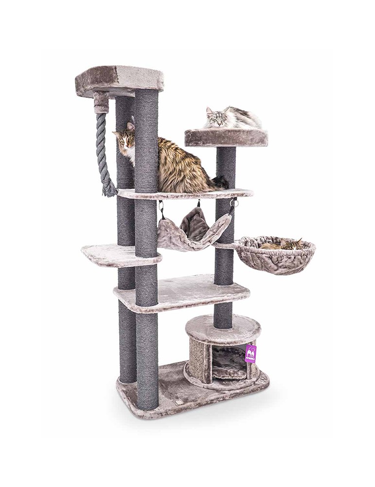 Cats love to scratch. And to climb, of course. So why not spoil your Rebel with the ultimate climbing paradise? We would like to introduce you to our cat tree Scenic View 175, one of the best in our collection. With scratching posts of 12 centimetres thick and many platforms, your Rebel will be entertained all day long. Have you become a little tired from all that playing? No problem, because with the two luxurious quilted hammocks, a sleeping house and two relaxing loungers on top, there is enough space to sleep.