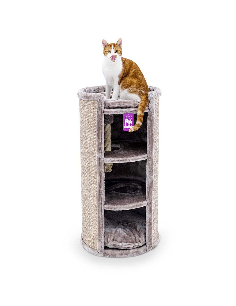 This is not just another scratch barrel. No, this is our Superdome 100. This scratching tower is covered with super strong sisal carpet and has an extra wide diameter. The entrances are also made wider so that every cat can easily get to its soft sleeping place. Also the little ones and older cats. And the luxury play rope provides even more fun for your Rebel. Why the name Superdome? Because this is one of the most stable scratching barrels you can find.