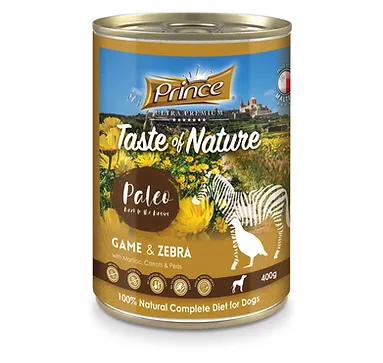 Composition: 50% composed of Game Heart, Game Meat, Game Tripe, Game Lung, 28,9% Broth, 10% composed of Zebra Meat, 4% Manioc, 3% Carrots, 3% Peas, 1% Minerals, 0,1% Olive Oil