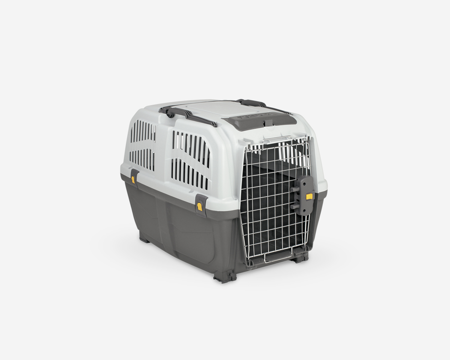 For air travel, most airlines require that the crate is equipped with a water bowl (Travel Kit Skudo 4-5-6-7) and metal side-locking pins (Skudo Fly Kit).These accessories are sold separately and are available online.