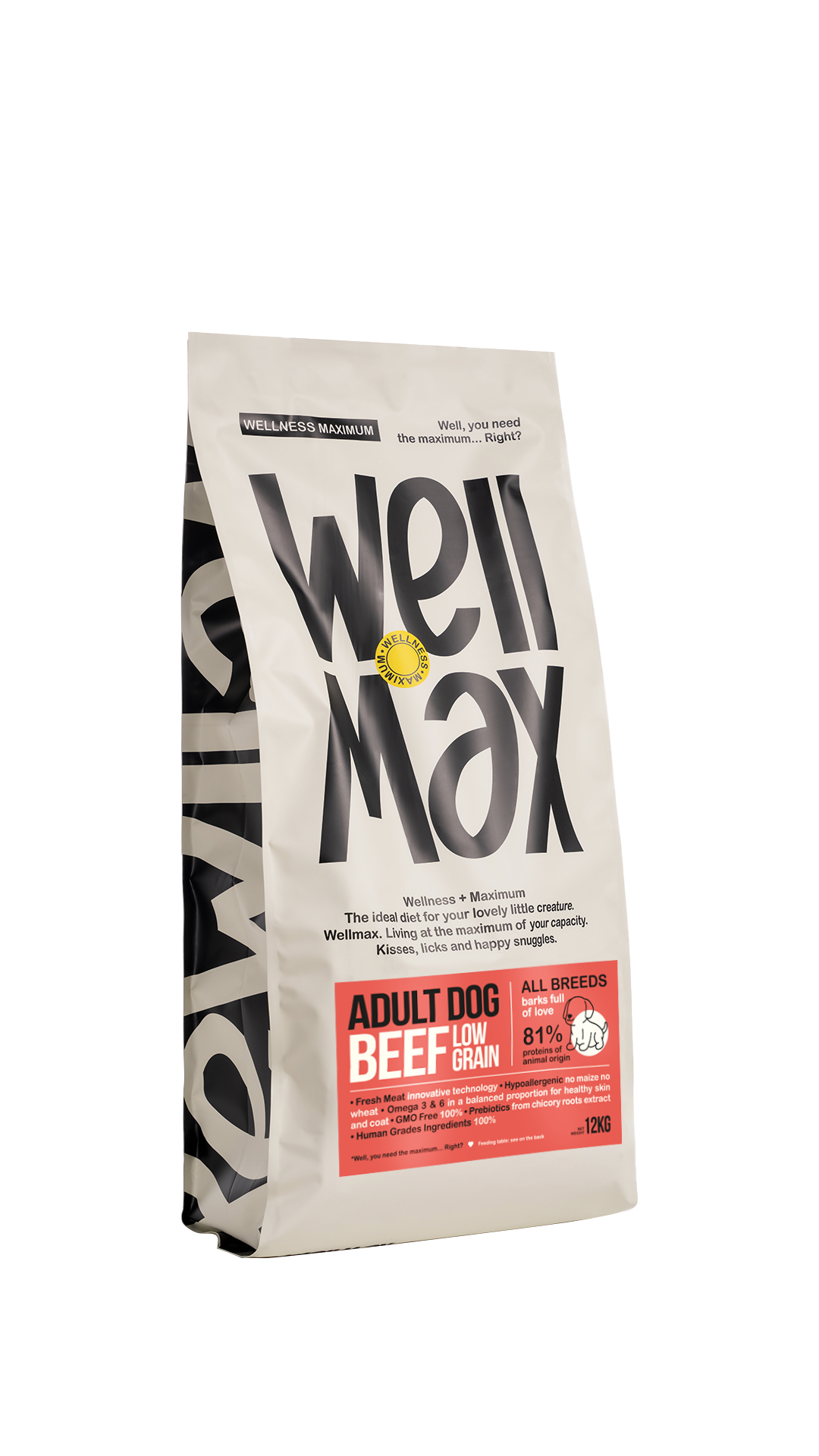 WellMax Beef Low Grain offers your dog a nutritious and flavorful meal based on fresh deboned beef (23%) and a carefully selected blend of low grain ingredients, ideal for adult dogs including those with sensitivities.